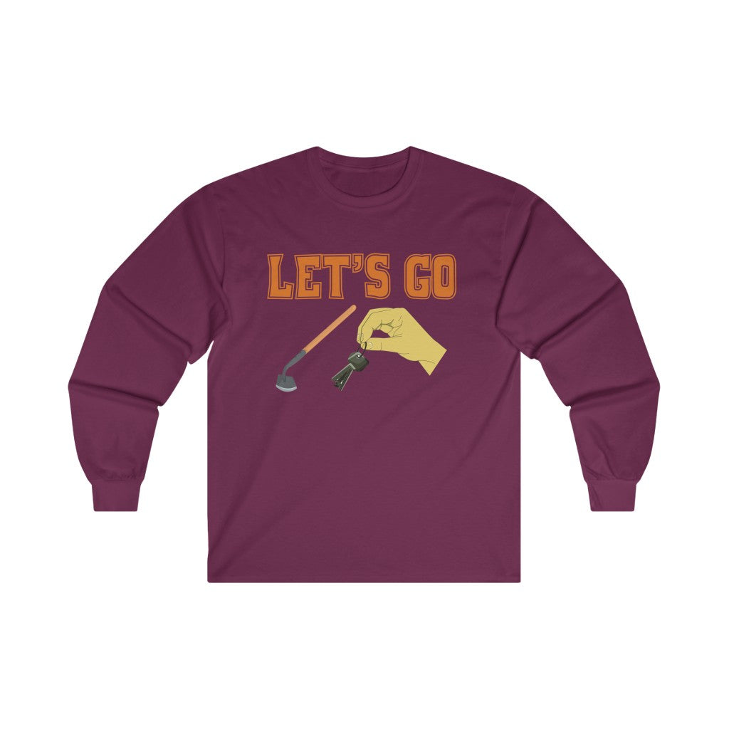 For all Virginia Tech Hokie fans with an affinity for witty banter and a unique sense of humor. Now you can merge those two things as the next Virginia Tech game approaches with this captivating Let's Go Hoe Keys Long Sleeve Tee. This one of a kind shirt is designed for the ultimate Virginia Tech fan. Shop I Love Blacksburg for all your Blacksburg and Hokie gear. Runs SMALLER than usual.